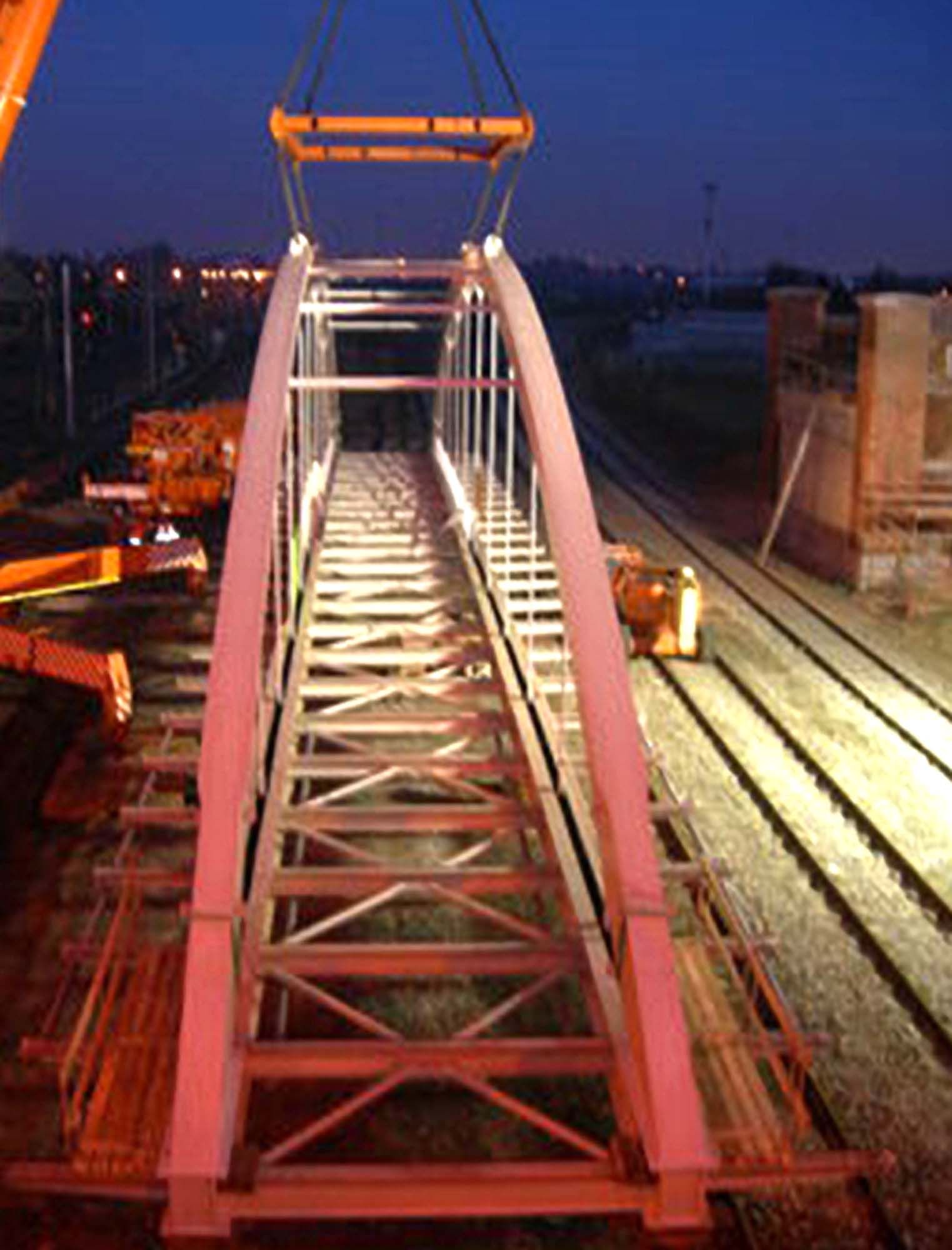 Grâce à l’utilisation d’une structure portante en acier, il a été possible de limiter au maximum les travaux sur chantier. En effet, comme le pont surplombe des voies de chemin de fer très fréquentées, il était crucial de limiter au maximum la durée de montage. Une fois de plus, l’acier a prouvé sa force sur ce point grâce à un montage rapide.