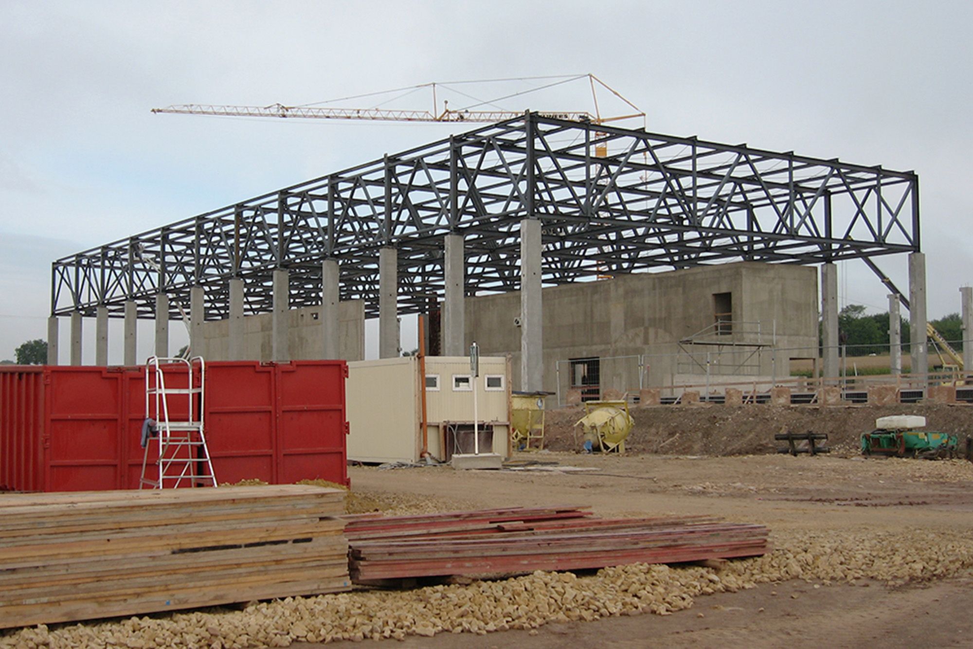 Les constructions en acier répondent à une organisation à la pointe du progrès, largement automatisée et évolutive. La surface bâtie de 33.000 m2 est couverte par des charpentes en treillis. Ces structures en acier S235 et S355 reposent principalement sur des colonnes monolithes ou des poutrelles HEB 220. Côté accès, le complexe se signale par un hall proéminent à ossature métallique.
