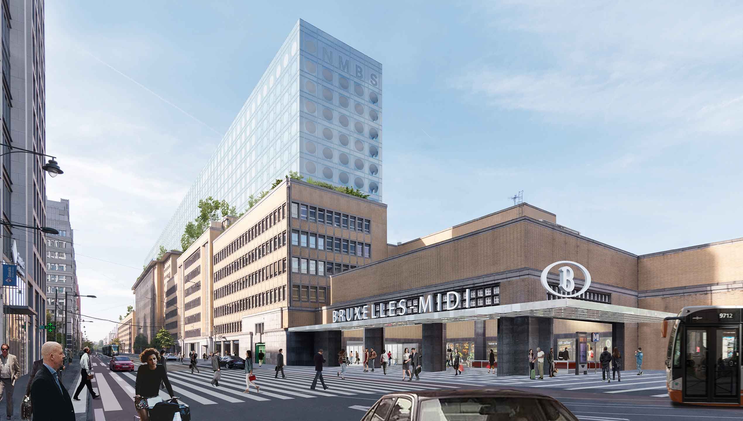 Le nouveau siège social près de la gare de Bruxelles-Midi accueillera l’ensemble des services de la société ferroviaire SNCB (actuellement répartis dans plusieurs bâtiments) et le personnel d’HR Rail — plus de 4.000 personnes au total. OMA / Reinier de Graaf et Jaspers-Eyers & Partners sont chargés de l’architecture.