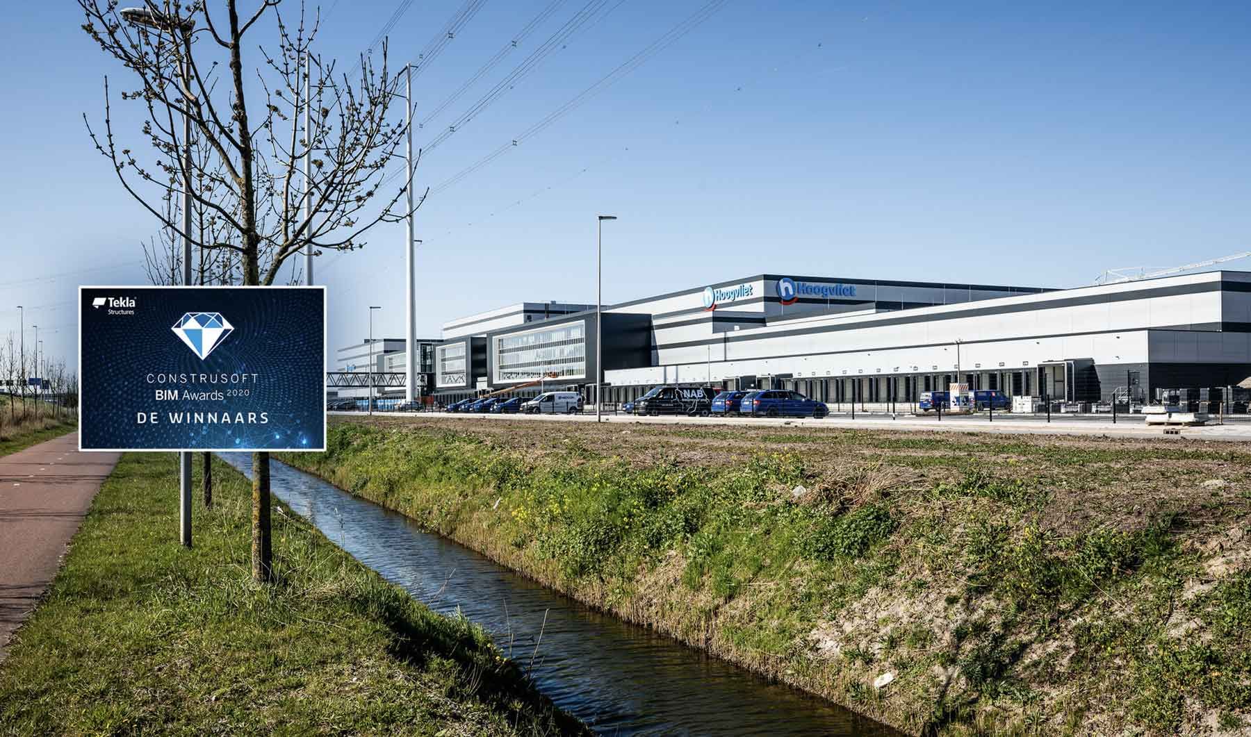 ASK Romein is met het nieuwbouwproject van het distributiecentrum Hoogvliet in Bleiswijk (NL) de winnaar geworden van de Construsoft BIM Awards 2020 in de categorie Industriële projecten! Elk jaar reikt Construsoft de BIM Awards uit aan bedrijven die binnen BIM bijzondere en uitdagende bouwprojecten verwezenlijken en daarbij gebruik maken van Tekla Structures en andere BIM-software. En dat was zeer zeker het geval bij de bouw van dit hypermoderne distributiecentrum!