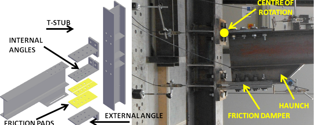 In seismic areas, steel frame structures are typically designed to withstand seismic actions by dissipating the earthquake-induced energy through plastic deformations in specific structural elements or regions identified as dissipative zones. In EN 1998-1 [1], for dissipative structures, a particular emphasis is given to the ductility of the dissipative zones so that the energy is dissipated through a ductile hysteretic behaviour. Generally, in structures with moment resisting frames (MRFs), the dissipative zones are concentrated at the extremities of the beams where plastic hinges are assumed to develop, while the beam-to-column joints are designed as non-dissipative regions. This may frequently lead to uneconomical joint solutions since, according to the principles of Capacity Design, the joints should be designed to account for the possible overstrength of the dissipative regions (i.e., the beam ends).