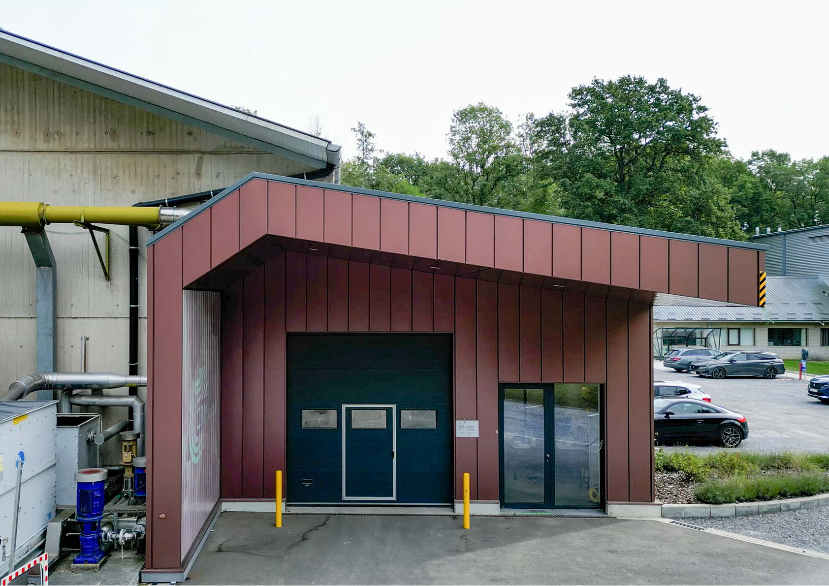 Het is de bedoeling dat de gevels mettertijd evolueren, met dank aan het dubbelwandige ARCHISOL-systeem (ArcelorMital): sandwichpanelen die aan de draagstructuur verankerd zijn en die een verschillende afwerking kunnen krijgen. Ten slotte zullen de gebruikte platte en gegolfde staalplaten ook een architecturale meerwaarde vormen door een reliëfspel te genereren dat versterkt wordt door de glinsterende afwerking van het oppervlak, waardoor de gevels als het ware in beweging komen en een unieke uitstraling krijgen.