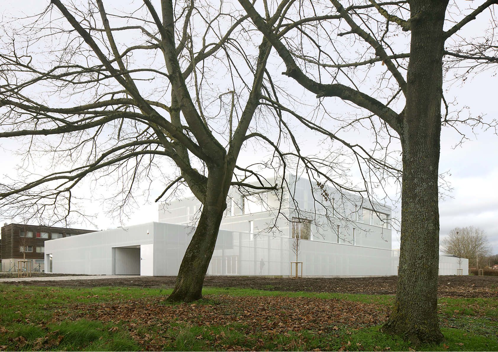 Dit minimalistische complex, dat is opgedeeld in drie entiteiten, herbergt het administratief en technisch centrum van de sociale huisvestingsmaatschappij van de regio Bergen. Een ‘poreuze behuizing’ waarborgt de verbinding tussen alle onderdelen van het project en maakt er één geheel van. De sobere, monochrome gebouwen zijn uitgerust met een gemengde draagstructuur in beton en staal en een stalen dak met een totale oppervlakte van 1350 m².