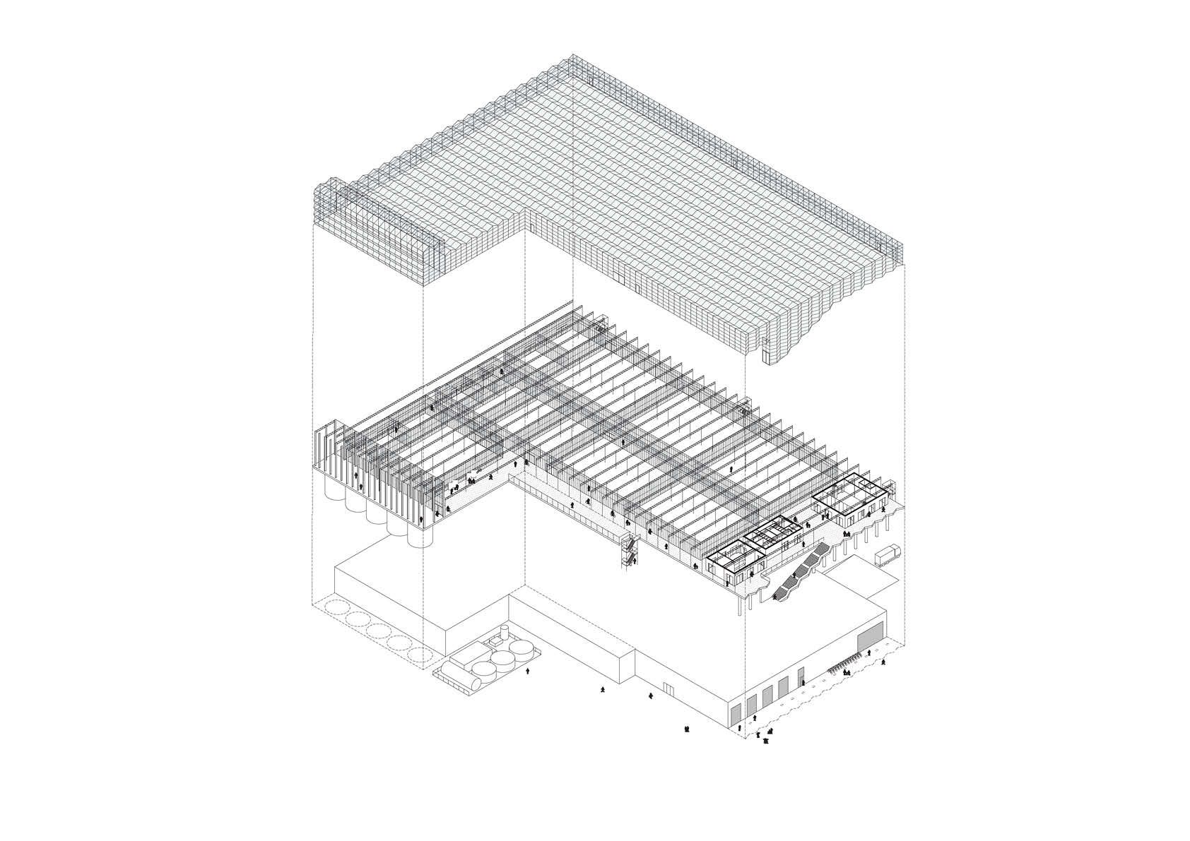 Boven op het dak van de bestaande kistenloods van de REO Veiling in Roeselare verrees Agrotopia, een serrestructuur van 9500 m² die hoogtechnologische onderzoeksfaciliteiten voor de teelt van vrucht- en bladgroenten combineert met educatieve bezoekersfuncties.