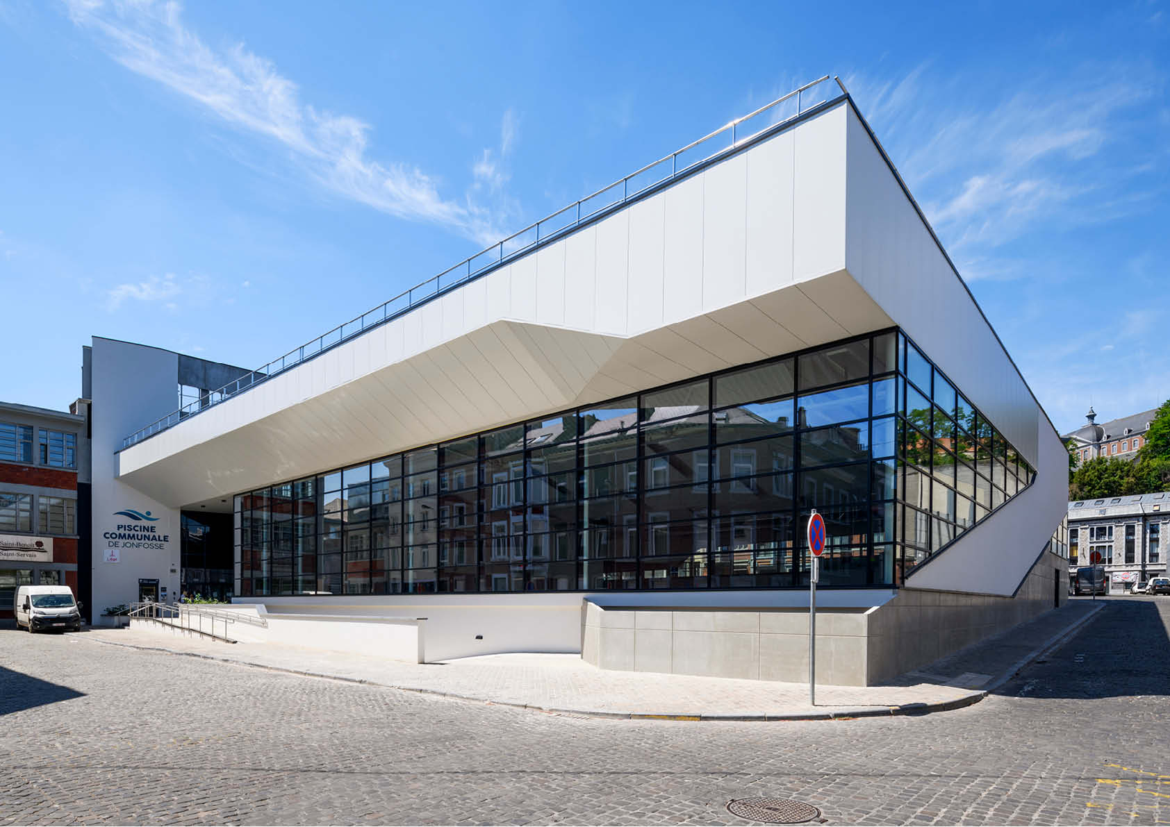 Het nieuwe zwembadcomplex in de Luikse Jonfosse-wijk is opgetrokken op een oude fabriekssite die doorheen de jaren was uitgegroeid tot een stadskanker met publieke parkeergelegenheid. Het biedt plaats aan drie zwembaden; een zwembad van 25x15 m met 6 banen, een instructiebad en een speel- en recreatielagune.